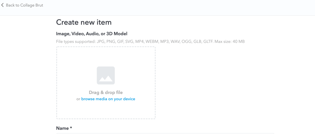 Koleksiyonu oluşturduktan sonra ürün listelemek için ‘Create New Item’ butonunu tıklıyoruz. Tıklayınca aşağıdaki ekran açılacak: